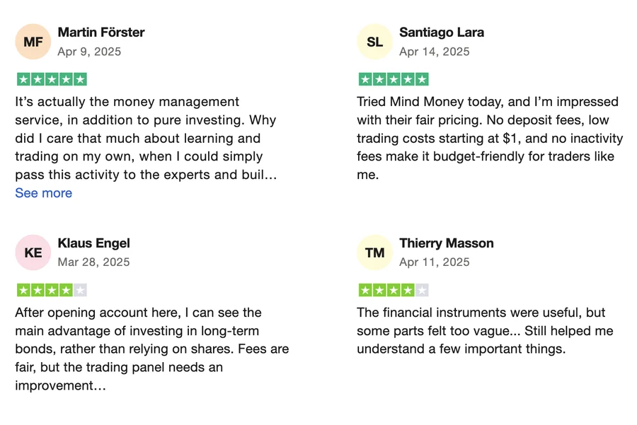 Прозрачные тарифы, европейская регуляция и фиксация стратегии через Bloomberg Terminal делают Mind-Money.EU удобным и понятным инструментом для инвесторов, которые ценят контроль и предсказуемость. Фокус на Portfolio Management и долгосрочных инструментах позволяет клиентам видеть реальную пользу от выбранной стратегии и оценивать её объективно.